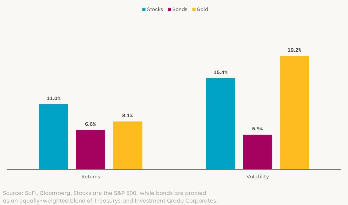 Of course, return is only one side of the equation. The other is risk, and another common critique is that gold is too unpredictable and volatile to warrant a meaningful allocation in an investment portfolio.