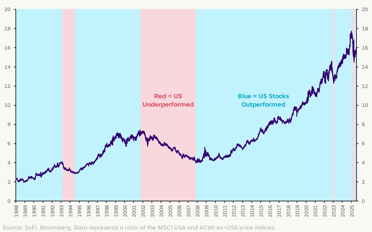 However, this can lead investors to abandon longer-term strategies in favor of chasing hot trends or abandoning underperforming stocks. This year has provided a textbook example of the conditions that foster recency bias. As we discussed last week, the first half of 2025 disrupted the nearly two decades of “U.S. exceptionalism” in stocks, as a dramatic reversal saw the dollar depreciate significantly and international markets surge.