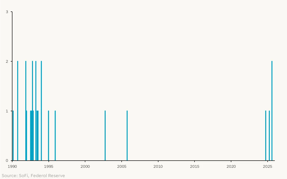 The Federal Reserve’s July meeting concluded with a decision that was both widely expected yet still surprising. As anticipated, the Fed held its benchmark federal funds rate steady in a target range of 4.25%−4.50% for the fifth consecutive meeting. The real story, however, was in the vote count. For the first time since 1993, two of the Fed’s governors cast dissenting votes, arguing instead for a 25-basis-point cut.
