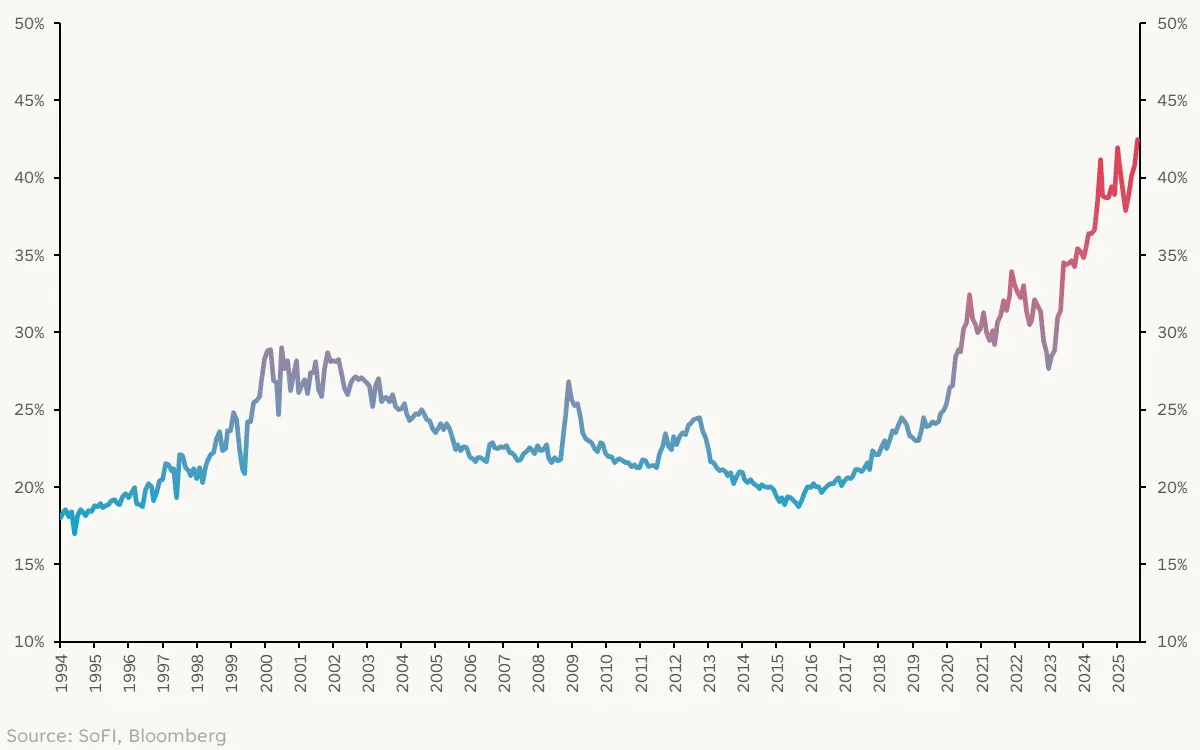 Being active as an investor doesn’t necessarily mean doing your own stock picking or only buying actively managed funds. It means being mindful of your exposure and your entry or exit points. With the 10 largest stocks in the S&P 500 now making up 42% of its overall market cap, many investors are concentrated in these names whether they intend to be or not. This makes managing your concentration risk more important right now.