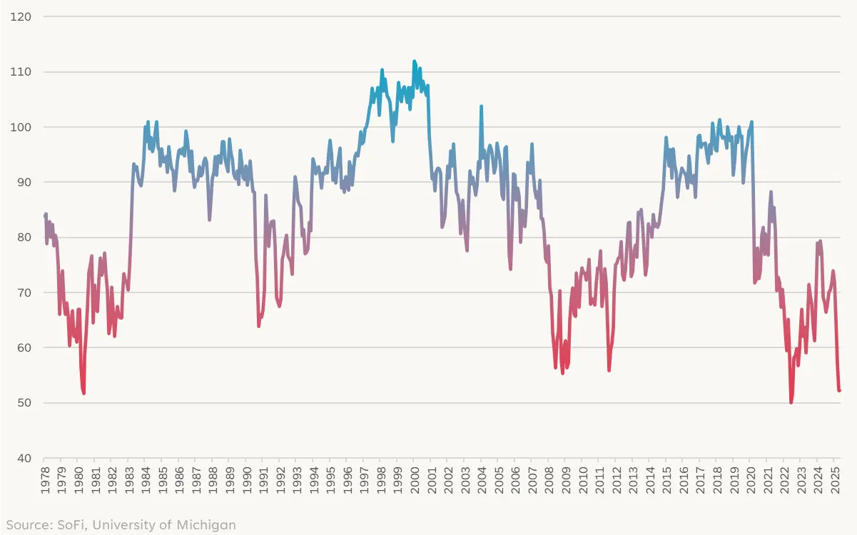 This conclusion makes sense given recent consumer sentiment trends, which according to the University of Michigan, is at its lowest levels outside of 1980 and 2022.