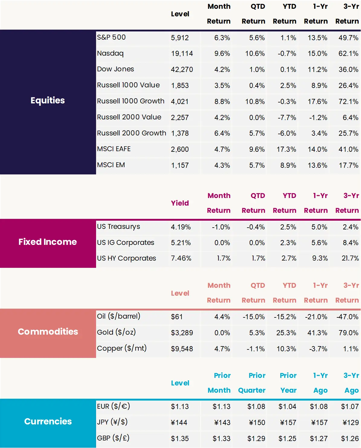 • 2- and 10-year Treasury yields rose 24 and 30 basis points, respectively, the first month in 2025 where yields finished the month higher than they began.