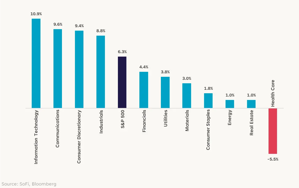 • Health Care stocks underperformed the broader market by 11.9 percentage points, the second-worst relative performance in history behind December 1999.