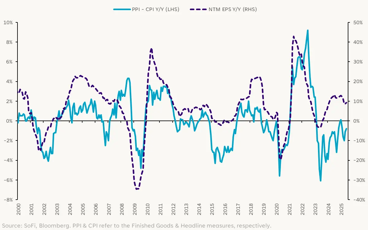 A possible explanation is that periods of higher wholesale inflation reflect strong corporate pricing power that will be passed through to consumers, boosting the bottom line. However, this time may be different, given that the nature of the cost shock isn’t just shifting supply and demand but the introduction of a new tax. So, if PPI moves higher relative to CPI in coming months, that might not suggest profit expansion like it otherwise would have.